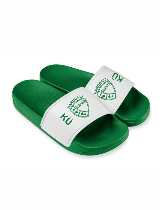 SG Suderwich Handball Badeschlappen grün mit weißer Lasche und Logodruck