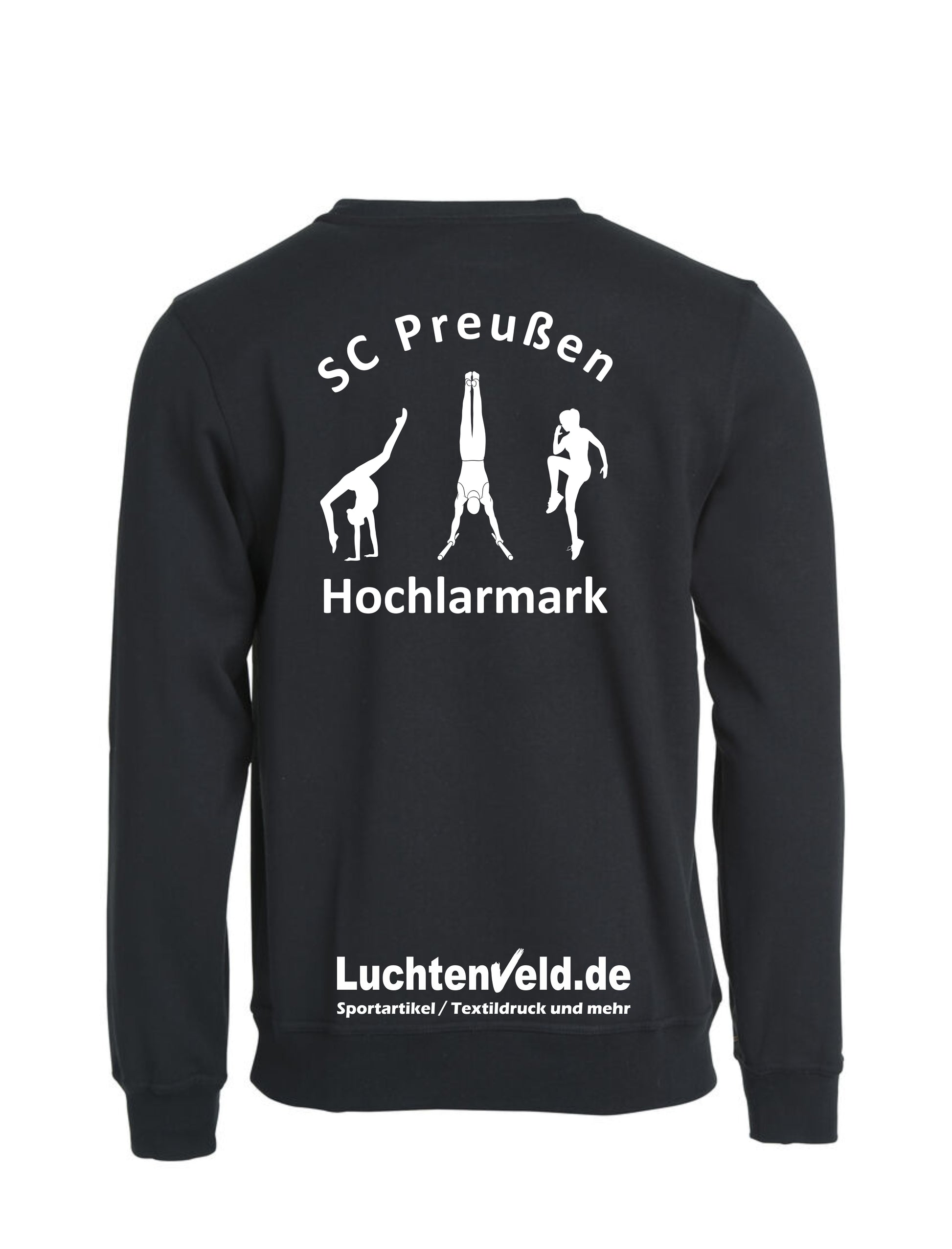 Hinten: SC Preußen Hochlarmark - Schriftzug / Illustration turnender Menschen