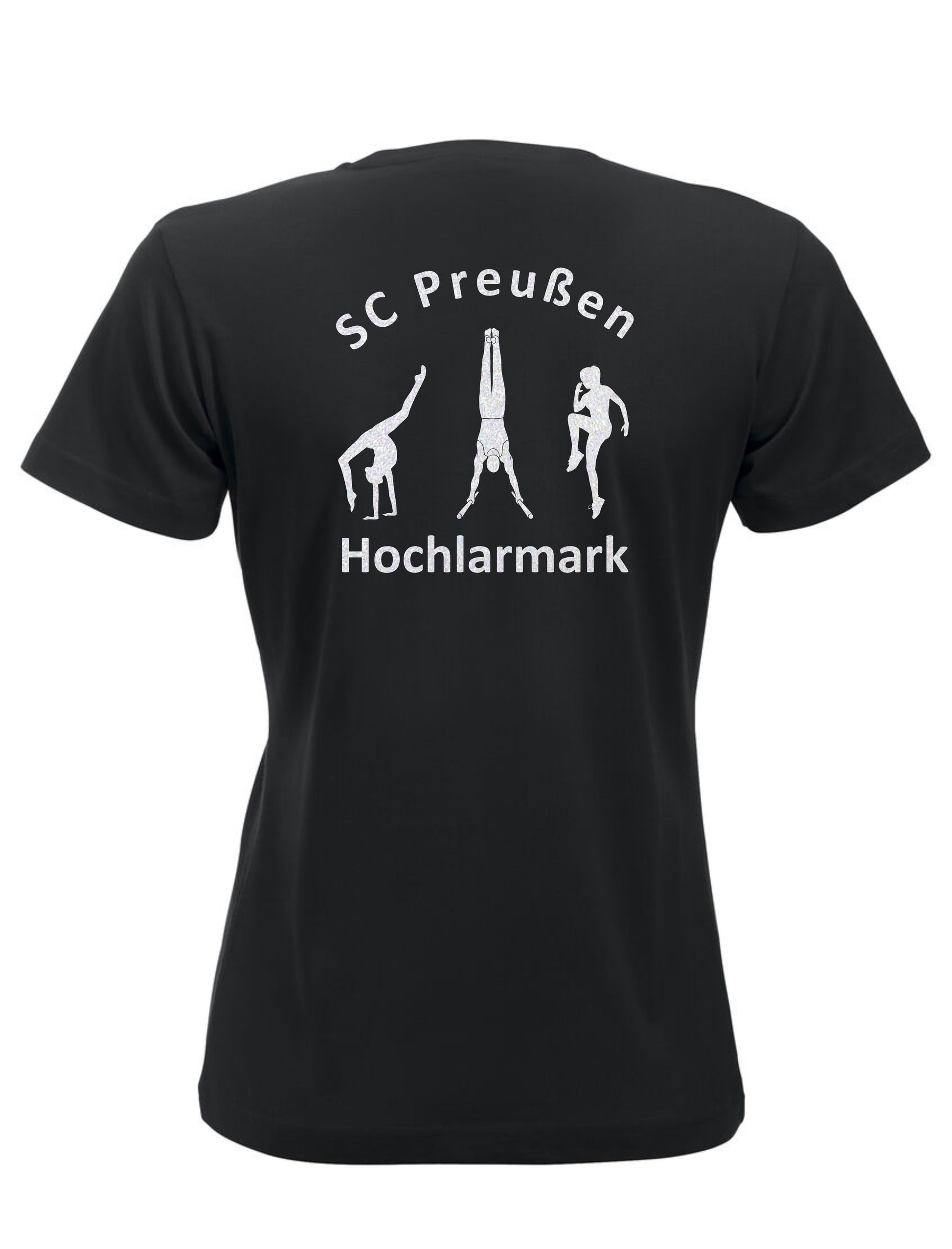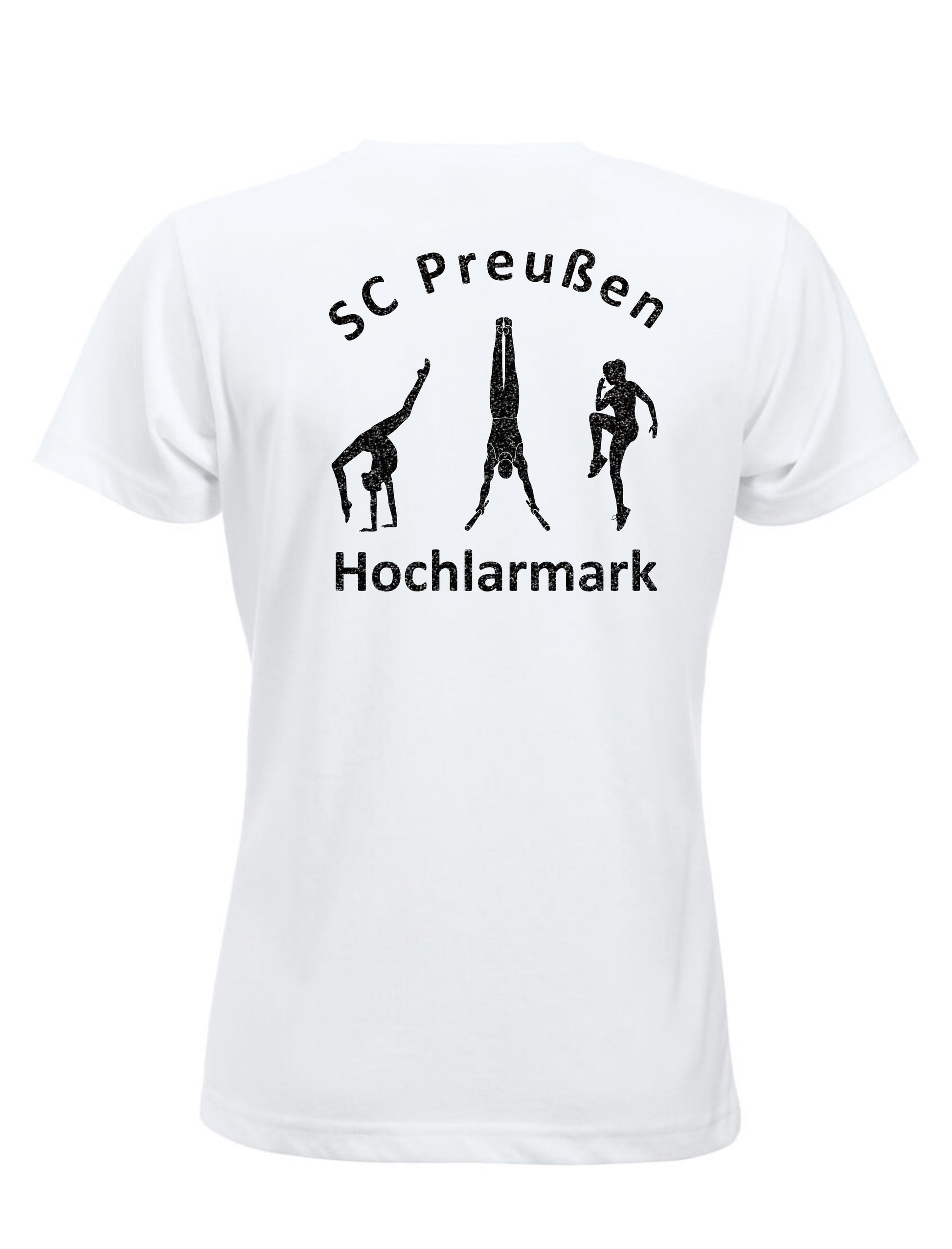 Hinten: SC Preußen Hochlarmark - Schriftzug / Illustrationen turnender Menschen