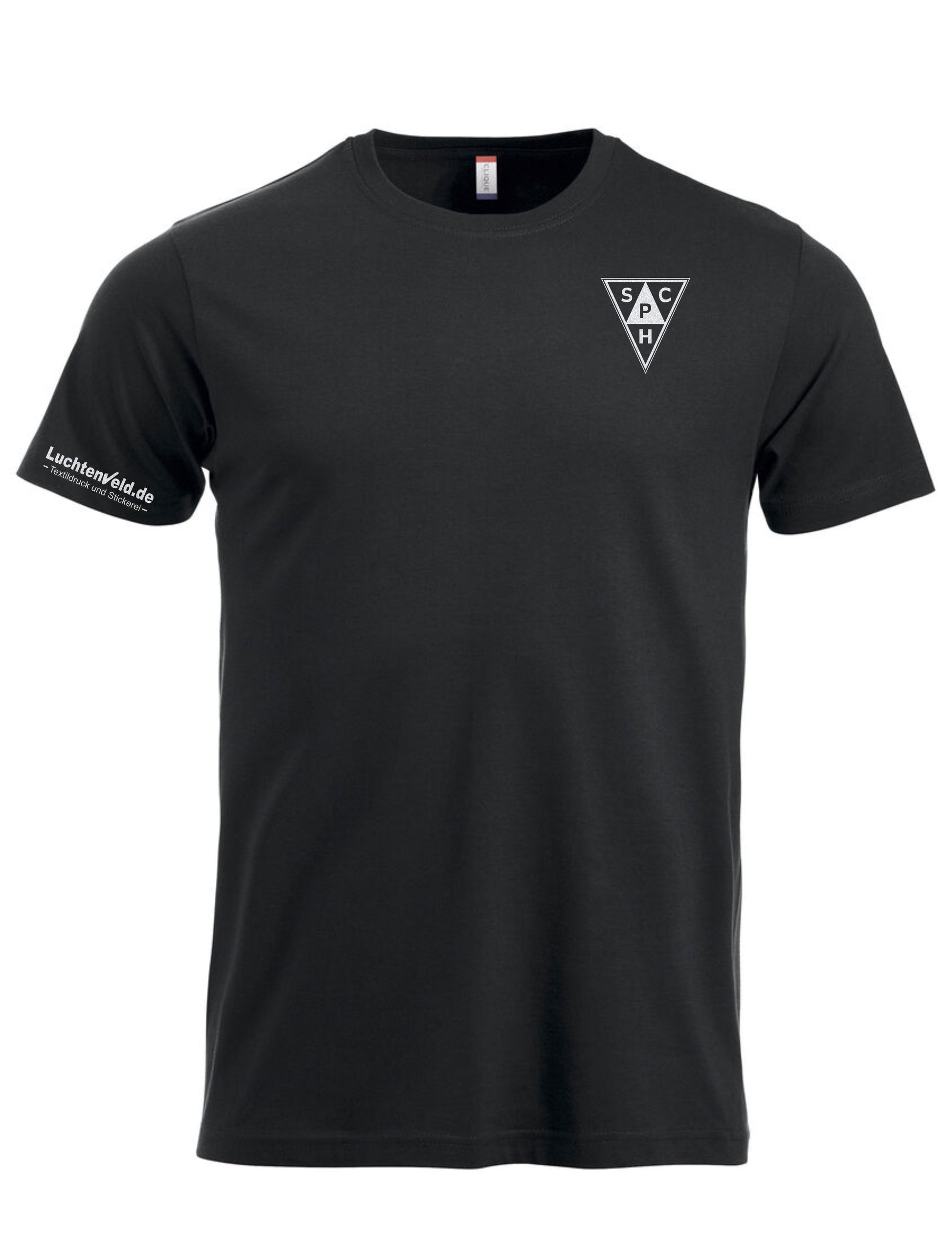 Hinten: SC Preußen Hochlarmark - Schriftzug / Illustration turnender Menschen