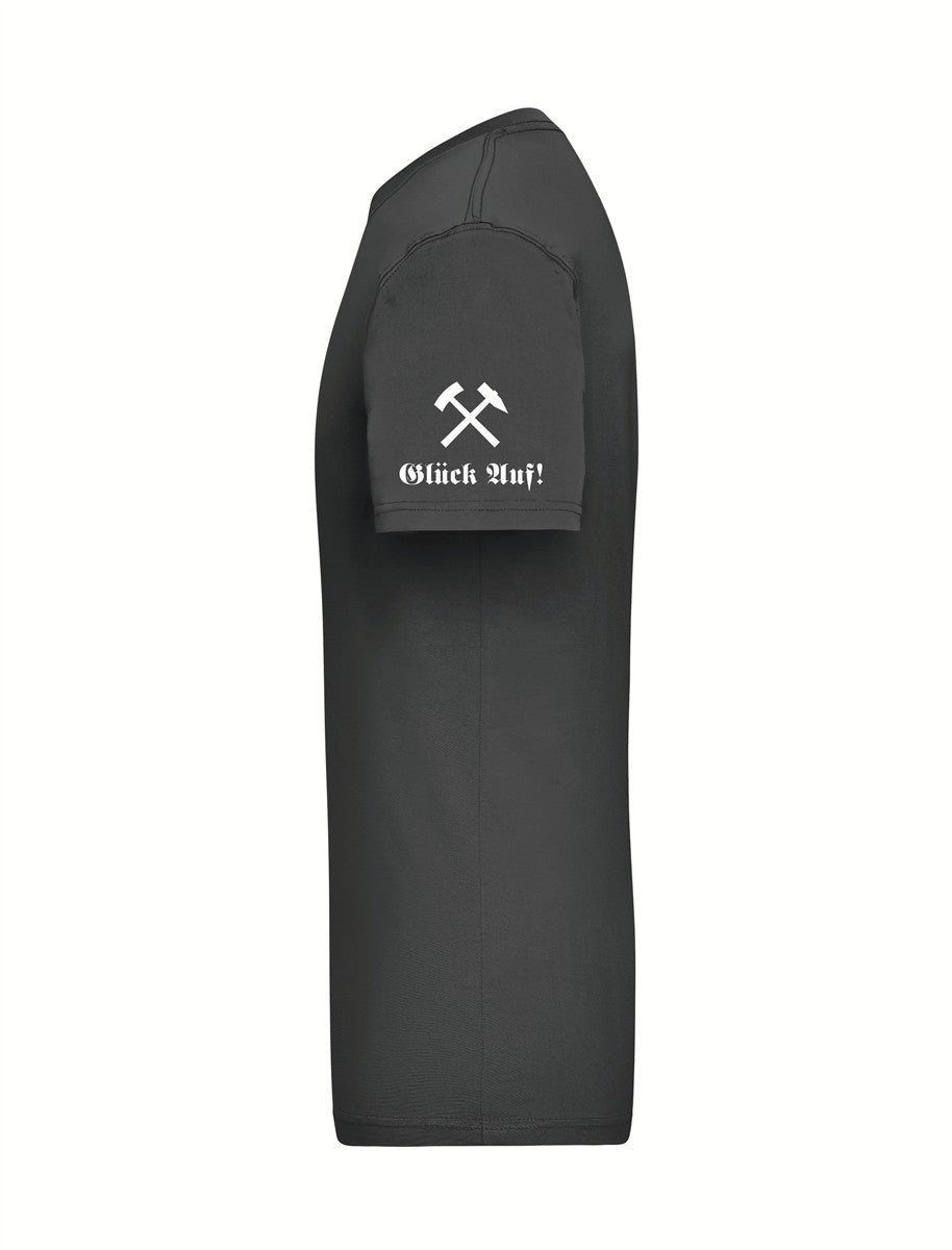 Arm links: Glück Auf! Schriftzug und Schlägel - und Eisen Zeichen